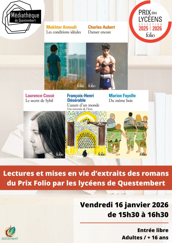 Prochain défi pour les jurés de Terminale du prix Folio : sortir de la classe et proposer la lecture d’extraits des romans au public de la médiathèque de Questembert. L’équipe de la médiathèque, Emmanuelle Olivier, Thibaud Péchot et Carine Bescher a accueilli avec enthousiasme cette proposition et convie le public à une rencontre avec les élèves et les livres le vendredi 16 janvier à 15h30. A cette occasion, il s’agira pour les élèves de mettre à l’épreuve leurs qualités oratoires devant un public extérieur au lycée mais aussi de provoquer l’échange autour des livres.